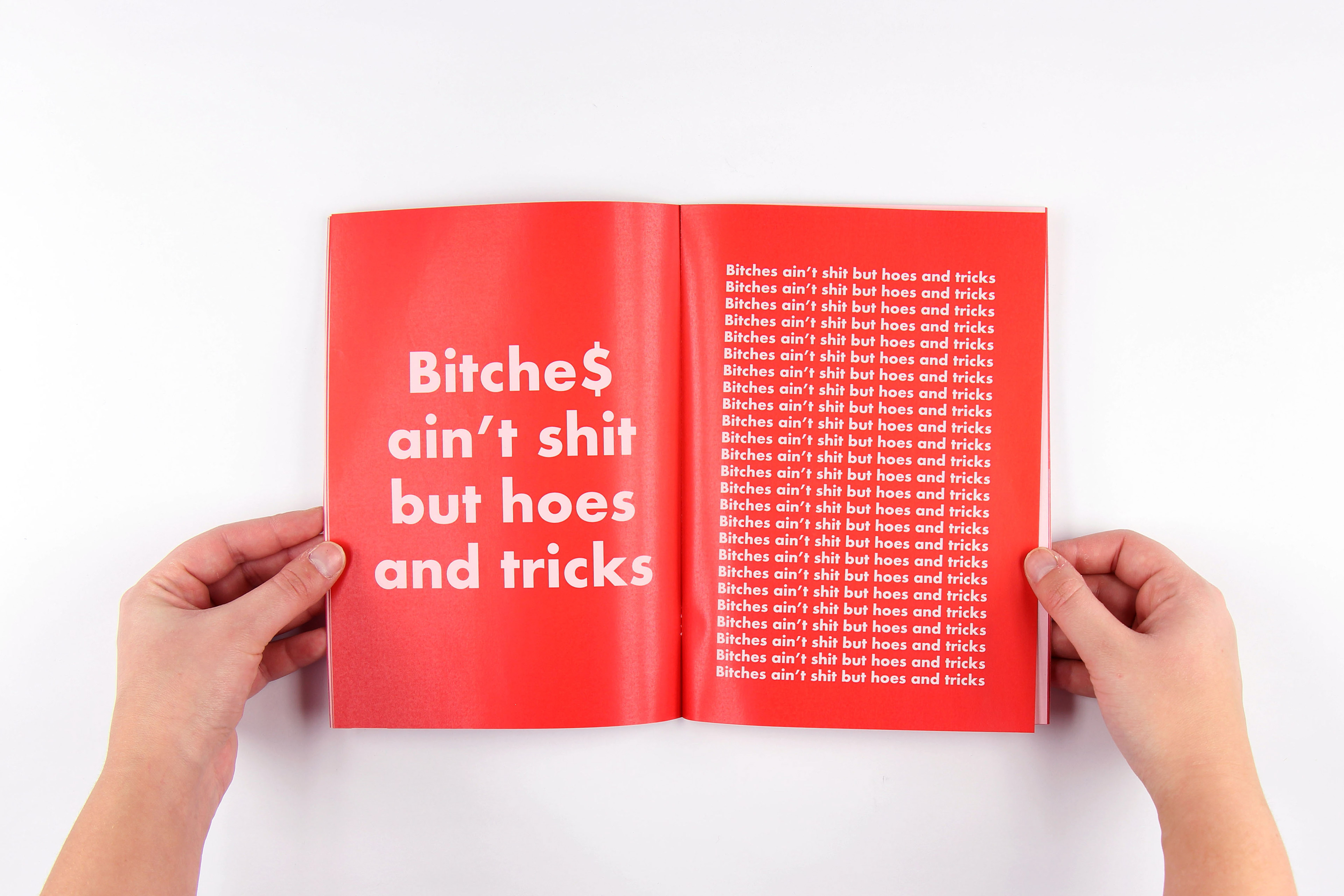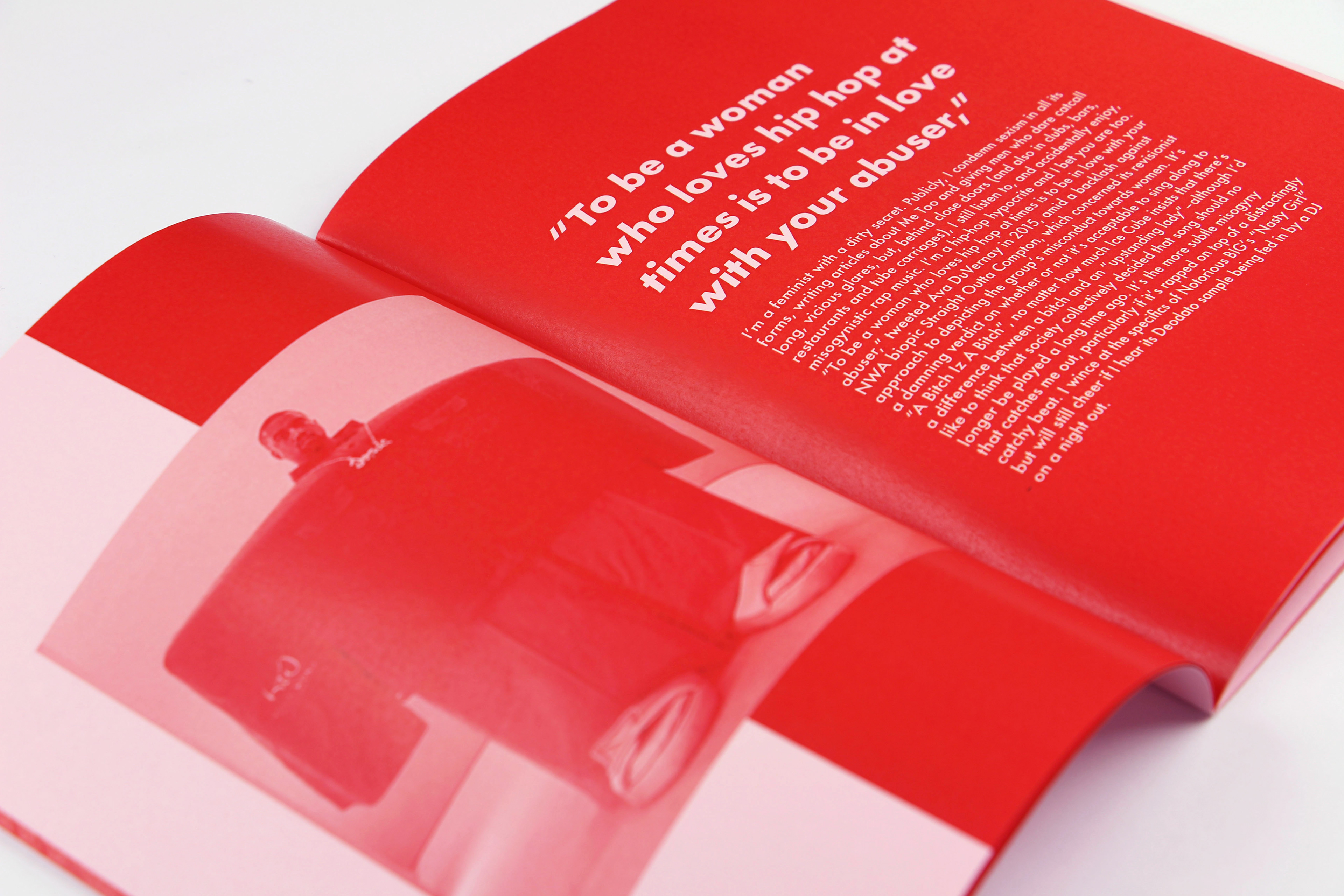 A zine exploring the idea: can I be a feminist and listen to misogynistic hip-hop? A monotone zine in red and pink to portray the suffering of women through male oppression, over ages and to this day. The two colours represent the binaries of male/female, power/powerlessness, objectifier/objectified. Interest created by this work led to my dissertation on the subject and a visual essay in the form of animation on a female interpretation of the hip-hop song, “I love it,” by Kanye West and Lil Pump.