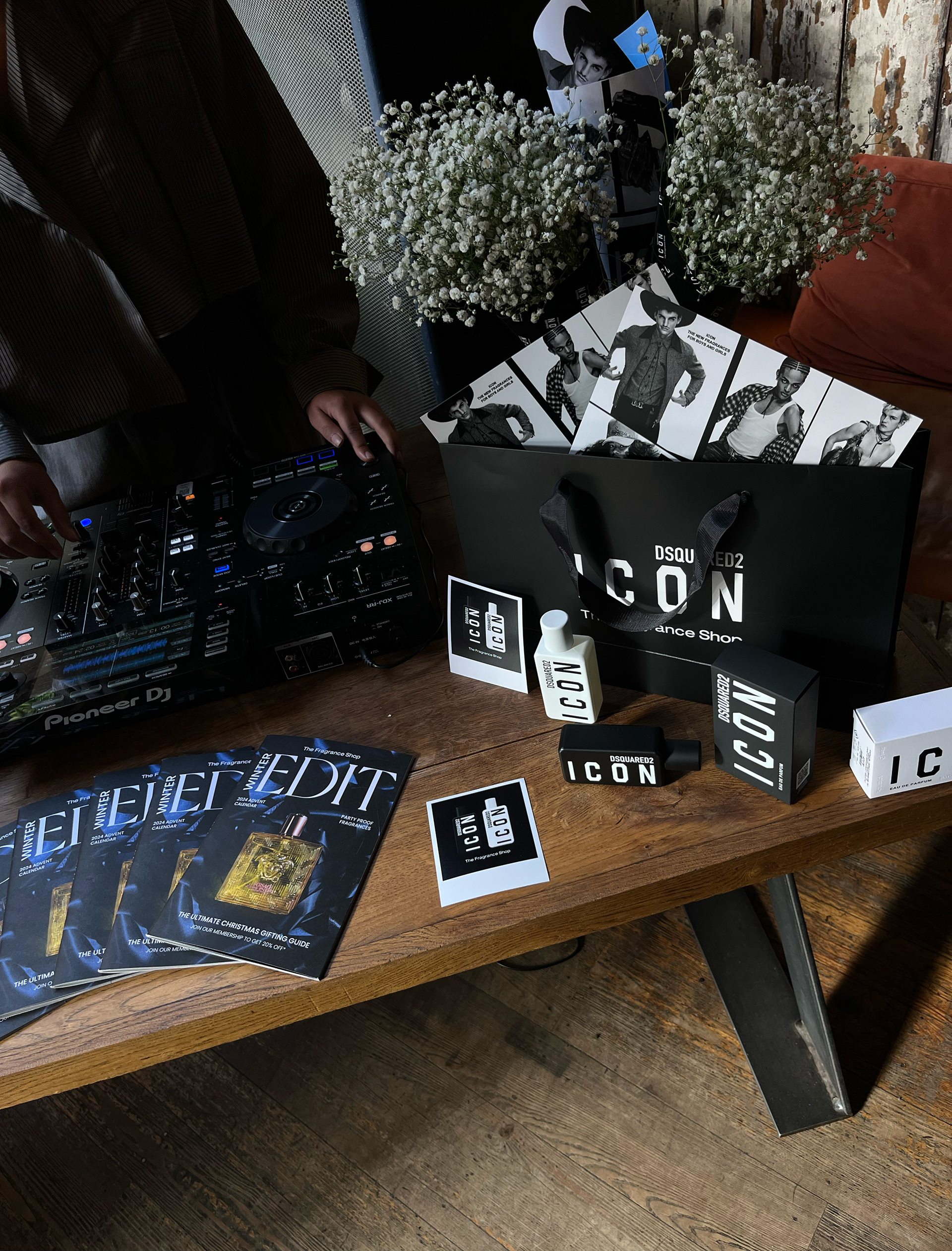 Event design for the launch of DSQUARED2 Icon (male and female). I designed the space to capture a New York grunge aesthetic while maintaining a refined, luxurious atmosphere. All print elements and spatial details were meticulously designed to ensure a cohesive and elevated experience; with several photo opportunities throughout the space.